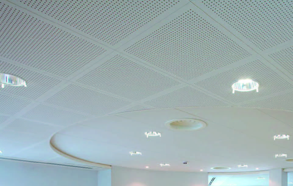 Contur son placas para techos acústicos registrables con una estructura de perfiles ocultos T24. Estos sistemas se aplican para el acondicionamiento acústico de recintos (absorción acústica) y/o para el diseño de espacios singulares. Gracias al efecto Cleaneo® son ideales para mejorar la calidad del aire interior de los espacios.
