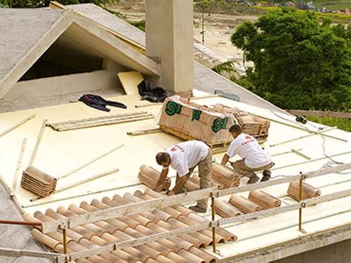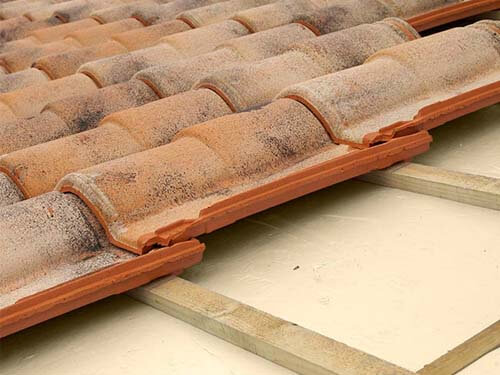 Sistema de aislamiento térmico para cubiertas inclinadas de tejas de cerámica u hormigón. Se emplean paneles de poliestireno extruido o XPS URSA ranuradas o lisas.