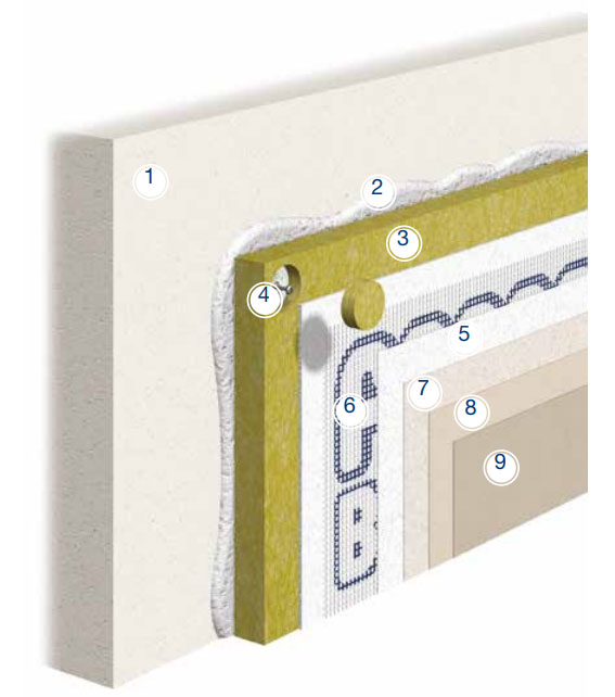 SATE Plus se compone de paneles aislantes de Lana de Roca,un material rígido de alta densidad incombustible (Reacción al fuego Euroclase A1). Este tipo de paneles no propagan el fuego ni generan humos tóxicos. Es un material inerte, de forma que no permite el crecimiento de microorganismos en su interior.